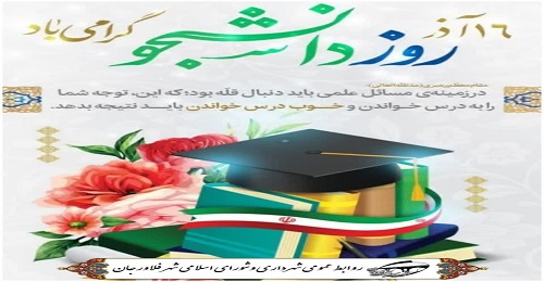 👈 «پیام تبریک و تهنیت شهردار، رئیس و اعضای شورای اسلامی شهر فلاورجان به مناسبت فرارسیدن ۱۶ آذرماه و گرامیداشت روز دانشجو»