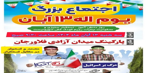 اطلاع رسانی اجتماع بزرگ یوم الله ۱۳ آبان ماه؛ روز دانش آموز، سالروز تسخیر لانه جاسوسی آمریکا، روز ملی مبارزه با استکبار جهانی